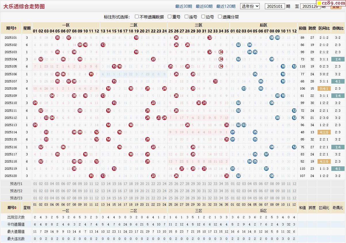 首页 > 大乐透预测 > 25年121期体彩大乐透近期走势图分析